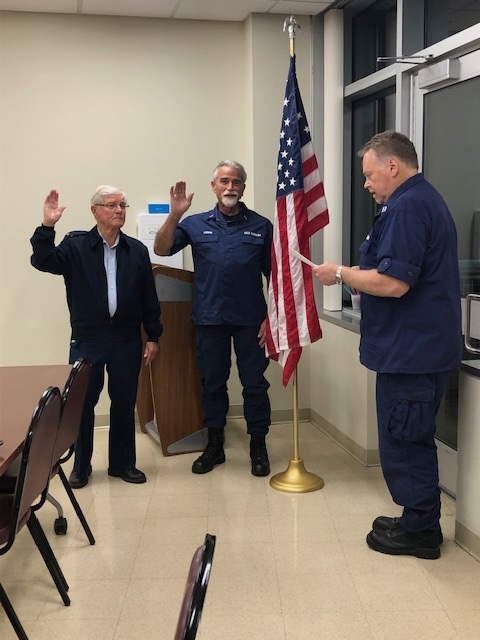 Congratulations to Flotilla 25-04’s New Leadership for 2026! Pictured is current FC Greg Hermanowycz administering the oath of office to incoming Flotilla Commander Garrett Ludwig (R), and Vice Flotilla Commander Frank Connolly.