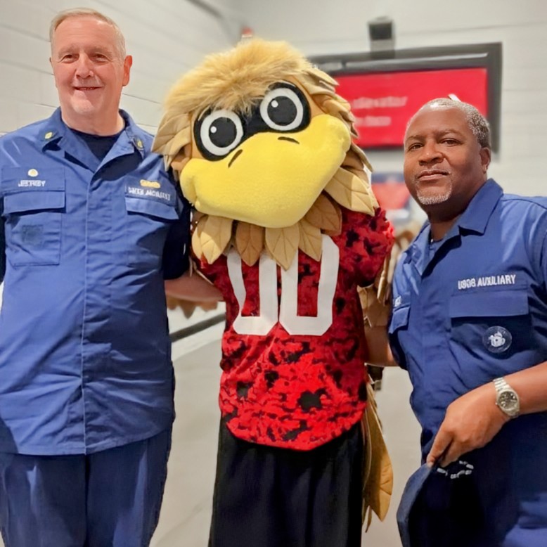 Auxiliary Branch Chief Chris Ware and "Recruiter Sandy" welcoming some young visitors at the event! It's wonderful to see the community, including families, engaging with the Coast Guard Auxiliary.