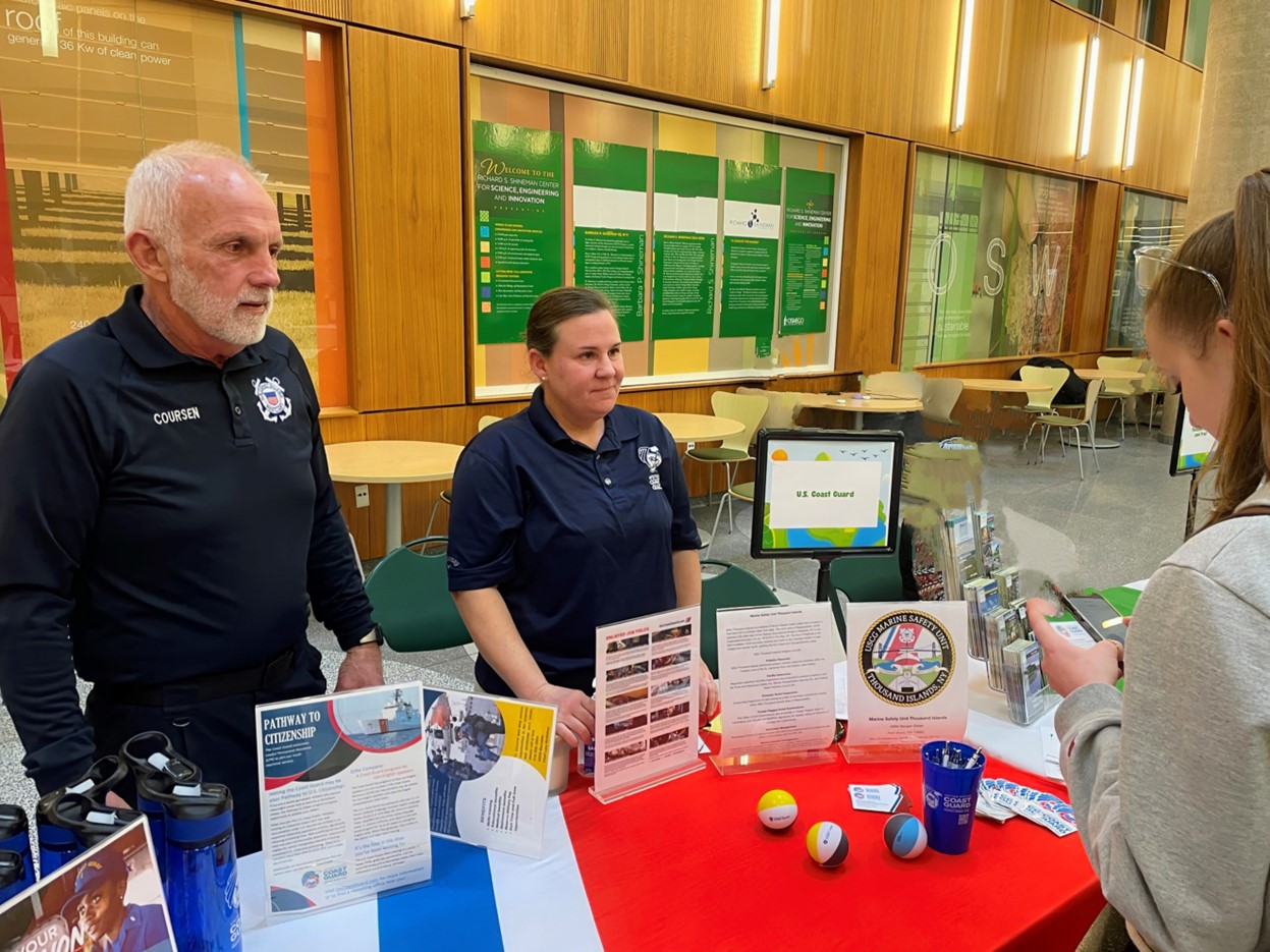 Auxiliarists Cecelia Cervi and Brian Smith represented Coast Guard Recruiting at the University of Rhode Island, College of Environmental Sciences on 07 FEB 2024. Auxiliary member Cervi is a current student at URI studying Marine Affairs: https://www.uri.edu/