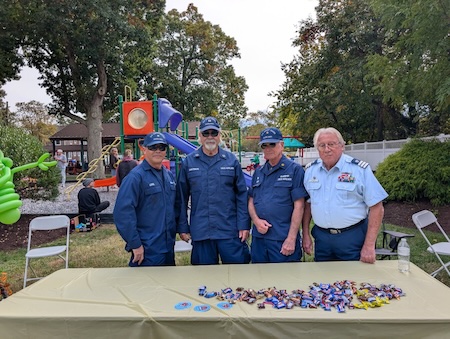 USCG Auxiliarist John Craig, Ralph Carotenuto, Chris Lemire, and Ray Price, from Flotilla 053-12-09, took part in the 10th Annual Cops and Goblins Halloween activity at John West Park in Ocean View, Delaware today. Over 1000 kids of all ages and parents were in attendance and enjoyed Trick and Treating at the Cops and Goblins event. State and Local Police Officers from surrounding communities, USCG Auxiliarist, and other First Responders attended tables and handed out candies to the kids.