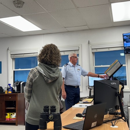 At the October meeting for flotilla 12-09 VFC Micheal Golden gave flotilla members a tour of the Indian River Inlet USCG station communications center. VFC Golden which stand watch on a regular bases discussed the duties and operations included while on watch.